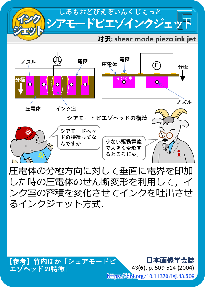 【参考文献】竹内ほか「シェアモードピエゾヘッドの特徴」, 日本画像学会誌 43(6), p. 509-514 (2004)