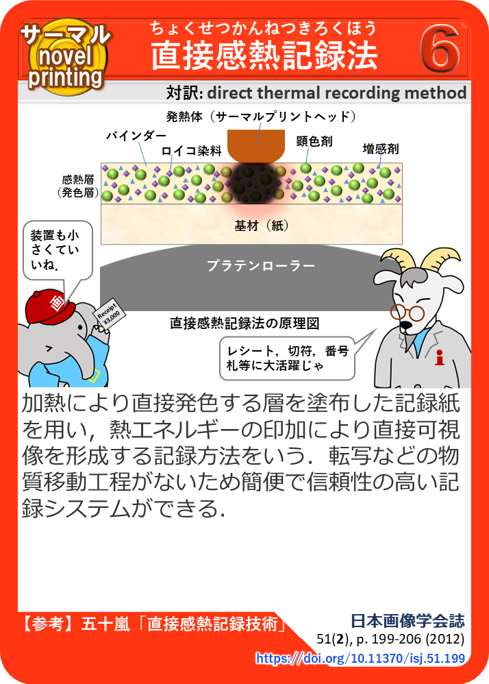 【参考文献】五十嵐「直接感熱記録技術」, 日本画像学会誌 51(2), p. 199-206 (2012)